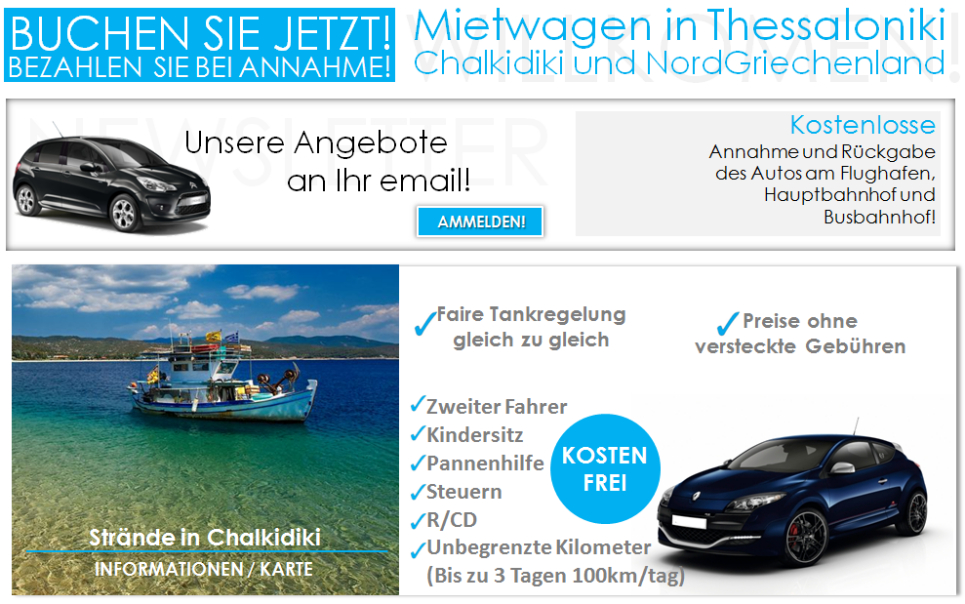 Autovermietung in Thessaloniki, Chalkidiki, Kavala . Mietwagen Thessaloniki Flughafen